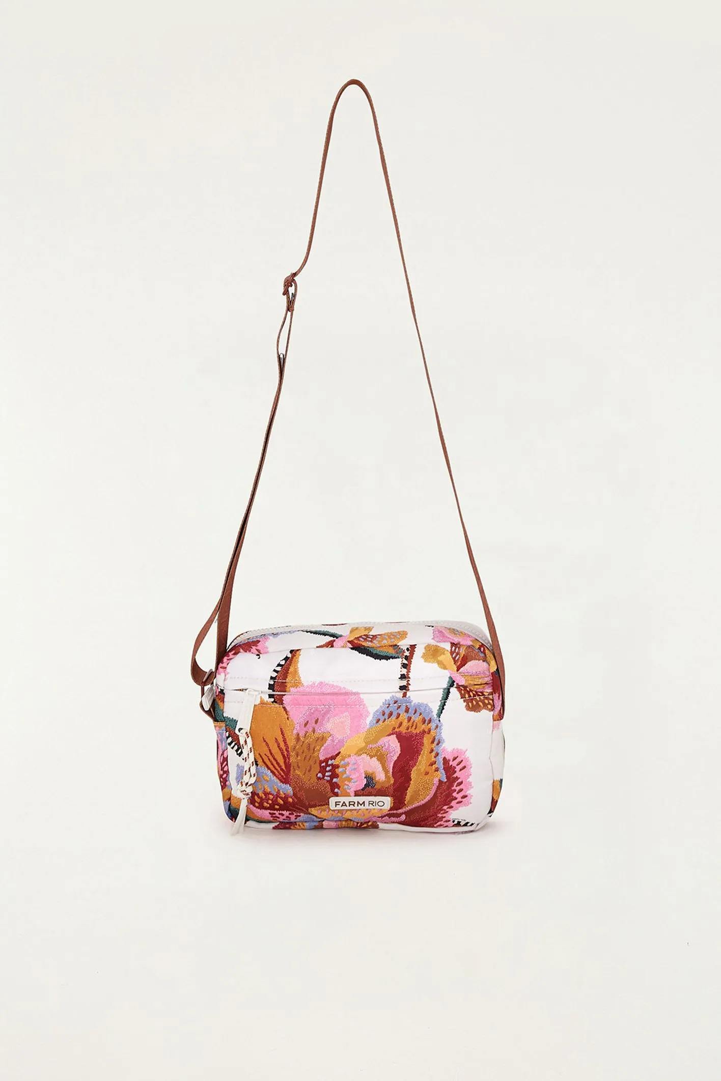 Bolsa casual com abertura principal e bolso frontal com fechos de zíper. bolso aberto na parte de trás da bolsa. alça com regulagem para uso transversal.