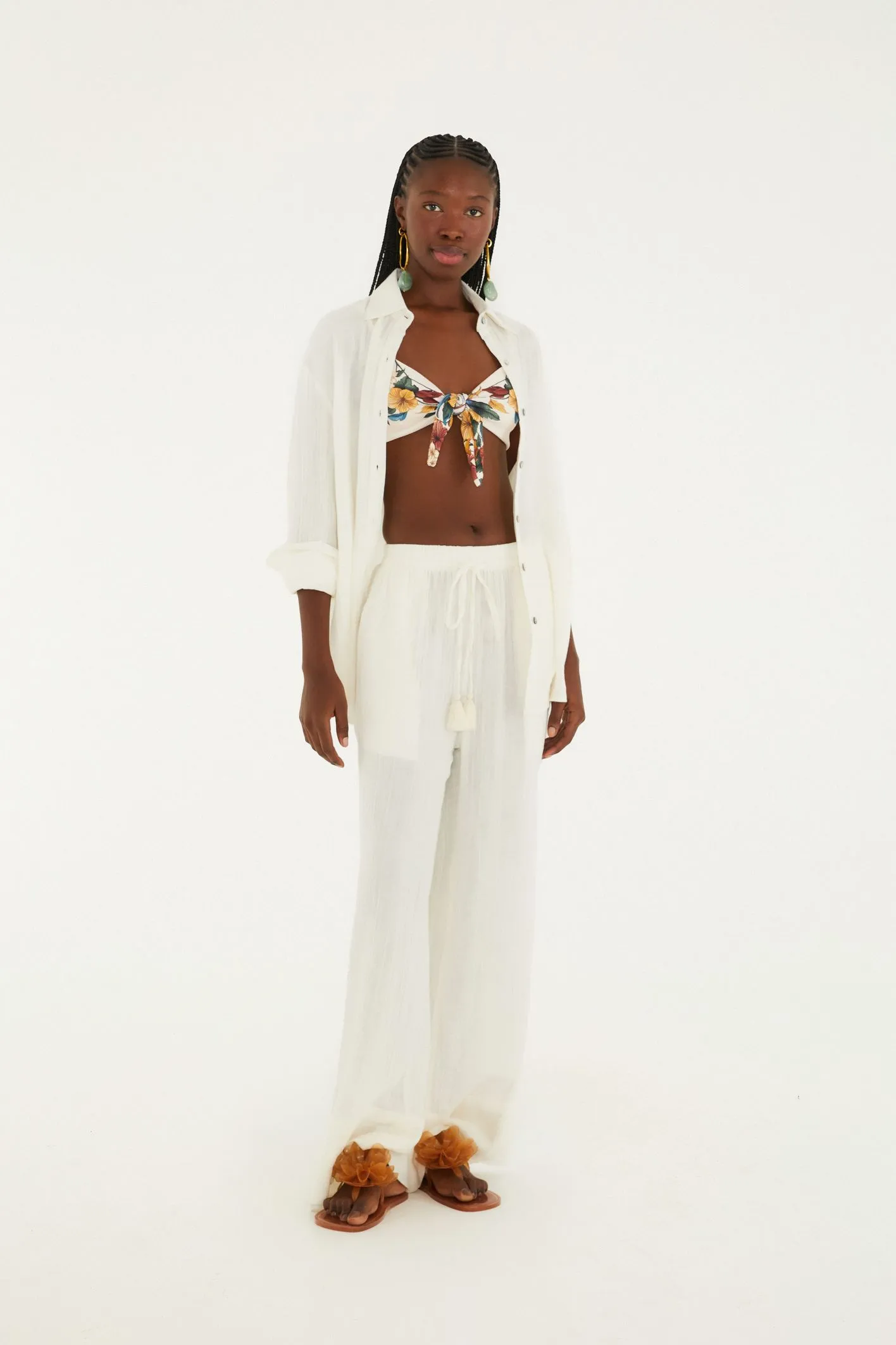 calça textura. com design fluido, essa calça tem caimento solto que agrega um toque moderno ao visual. as pernas amplas proporcionam conforto e movimento, ideal para um look casual e sofisticado ao mesmo tempo. cintura com amarração personalizada que permite um ajuste perfeito. uma peça versátil para diversas ocasiões, do dia à noite. FARM RIO original - verão 26.