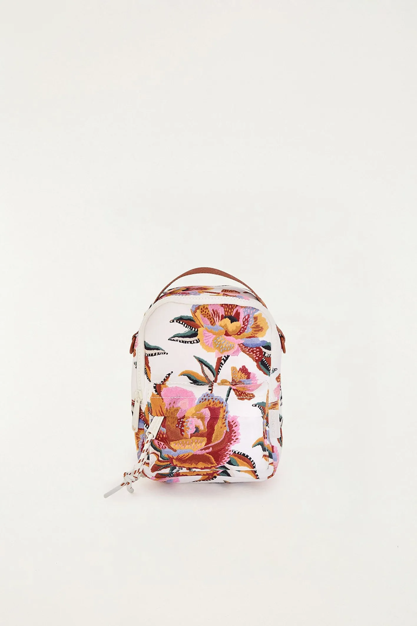 A peça possui tamanho mini, com medidas : 20x11x15 cm e fechamento superior por zíper, alças ajustáveis, bolso frontal com fechamento por zíper e puxador, tag da marca emborrachada aplicada na lateral, alça de mão e alças de ombro em gorgorão com nome da marca em baixo relevo versão em poliéster . pode ser utilizada nas costas ou como bolsa de ombro.