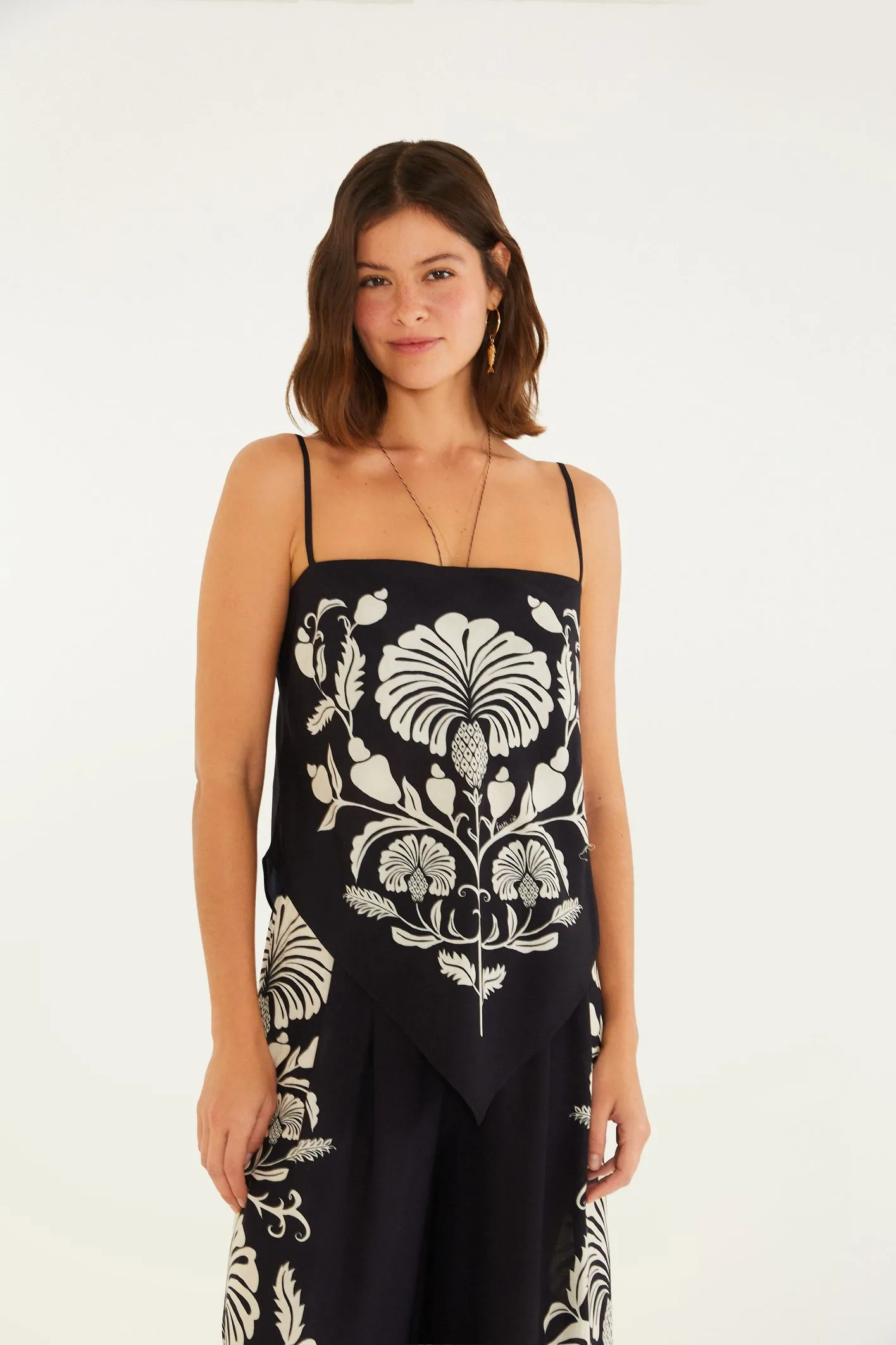 regata estampada sintra. possui alças finas com acabamento delicado e modelagem fluida que proporciona leveza ao vestir. perfeita para um passeio casual ou um encontro descontraído. o charme da peça está nos detalhes únicos e no caimento solto, tornando-se um verdadeiro convite ao estilo. FARM RIO original - verão 26.
