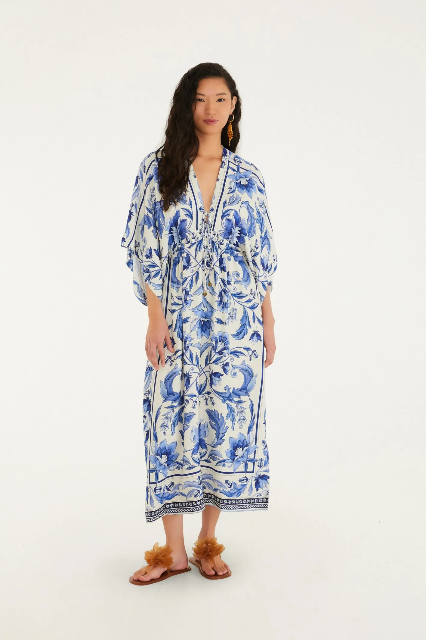 vestido longo manga estampado natália. este vestido possui decote em v com detalhe de amarração no busto e insinuantes mangas fluidas que destacam o design casual. a cintura marcada por um elástico suave proporciona caimento confortável e elegante. perfeito para dias ensolarados ou eventos especiais ao ar livre. FARM RIO original - verão 26.